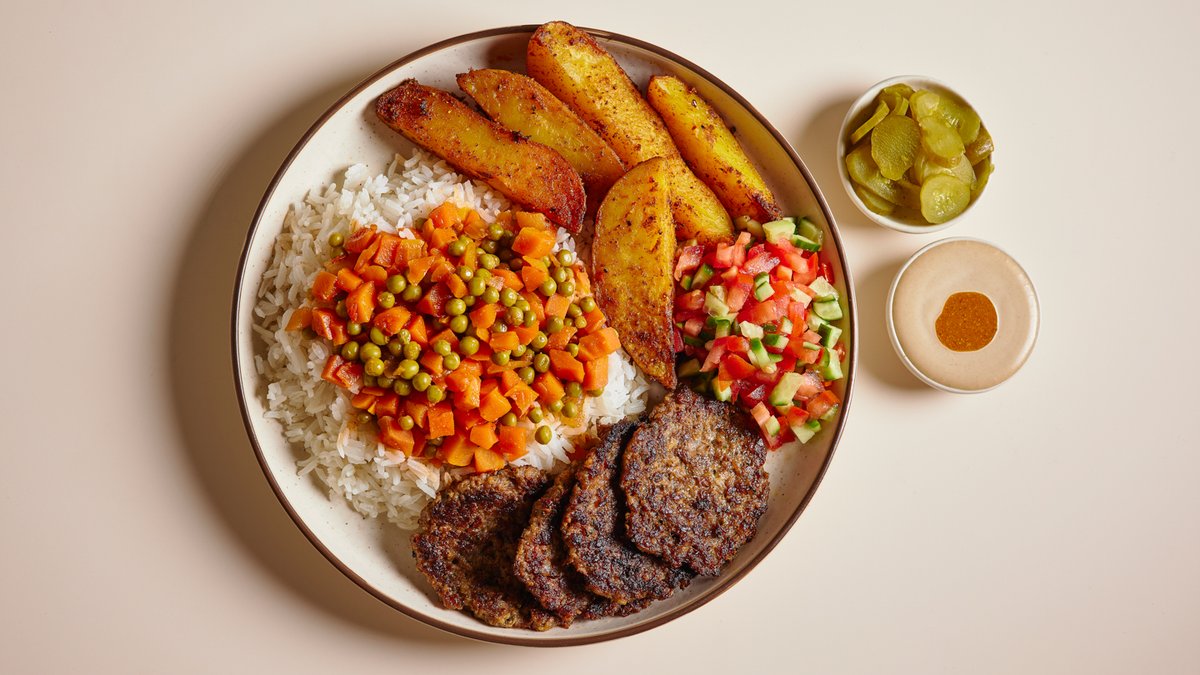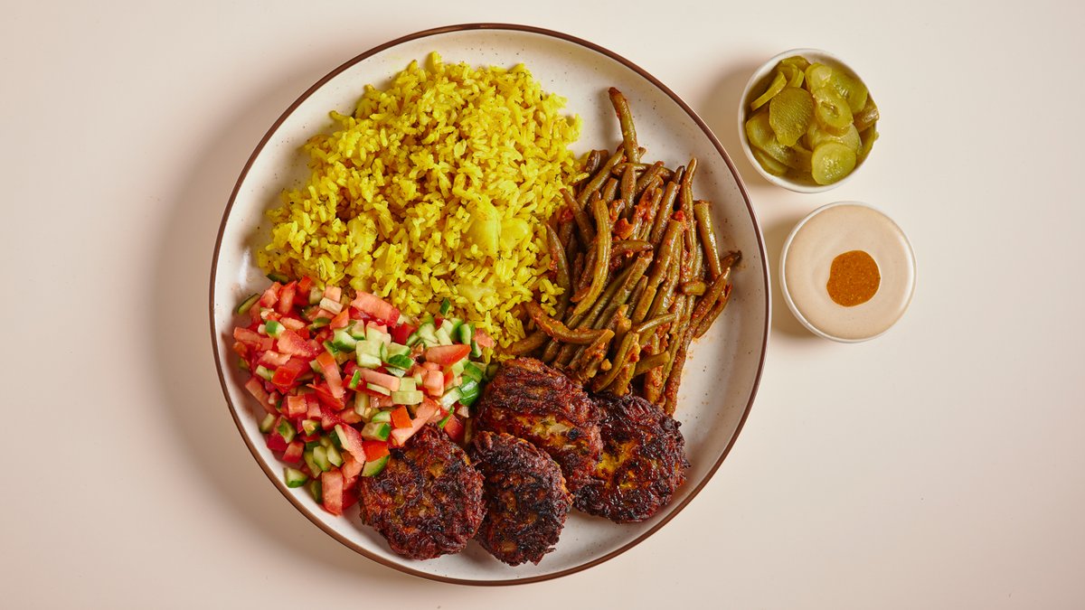 קציצות ירק, סלט ירקות קטן ותוספת חמה לבחירה