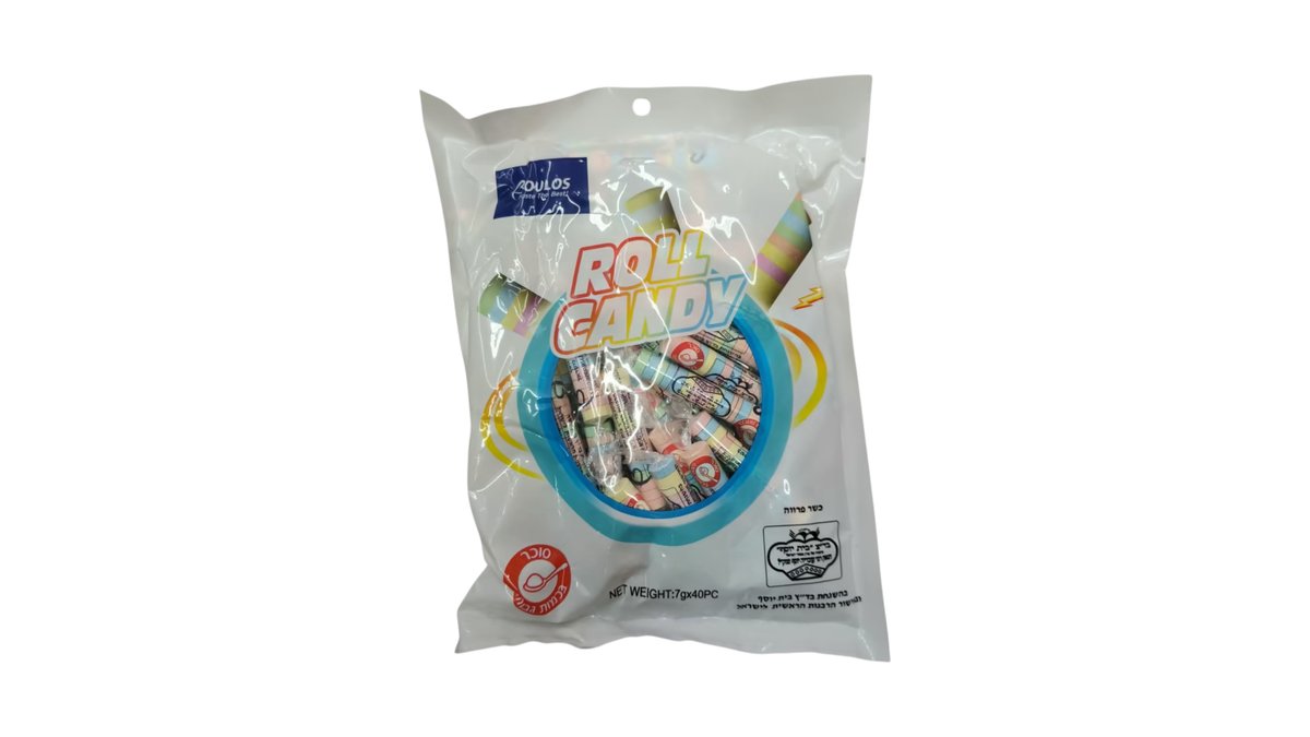 שקית של גלילי סוכריות סודה בטעמי פירות