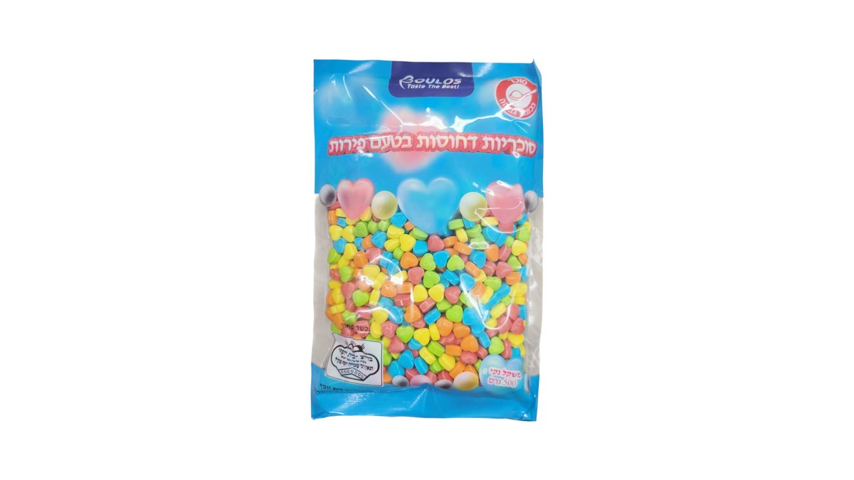 שקית עדשים ציבעוני בצורת לבבות 400 גרם