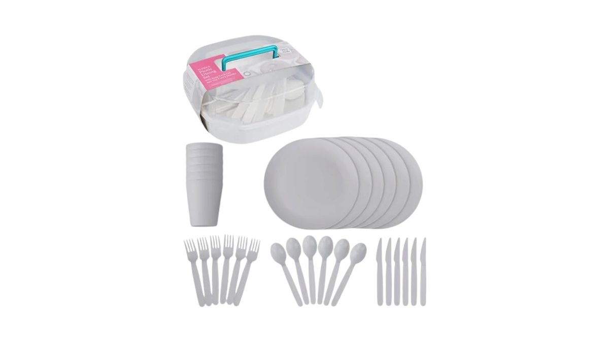 סט כלי אוכל רב פעמי 32 חלקים לקמפינג ופיקניק במארז פלסטיק