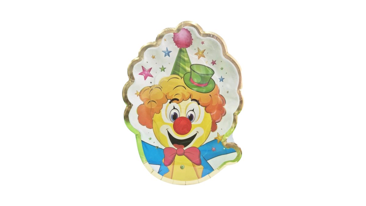 10 צלחות קרטון גדולות דגם ראש ליצן פורים שמח