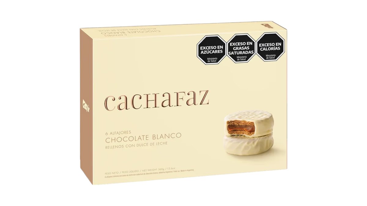 קצ’פאז – 6 אלפחורס בציפוי שוקולד לבן ממולאים דולסה דה לצ’ | cachafaz