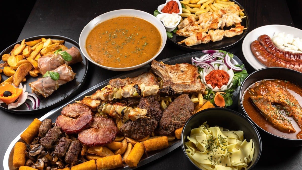 Ražnjići (250g), luk, ajvar, povrće, meso po izboru *slika je simbolična