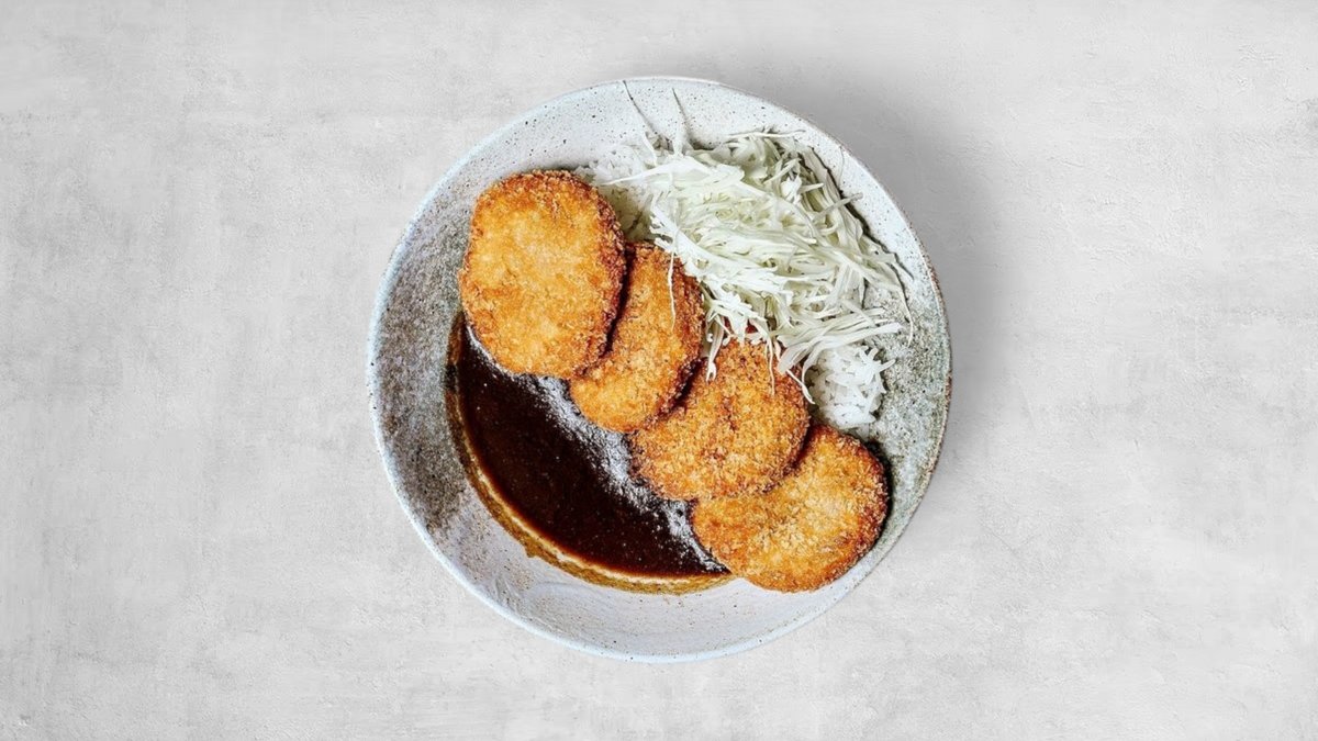 Hrskavi tofu odrezak u panko mrvicama, poslužen s bogatim domaćim japanskim curry umakom i mirisnom jasmin rižom. Uz dodatak svježeg coleslawa od tanko rezanog mladog kupusa i mrkve u laganoj majonezi, uz završni dodir crnog sezama.