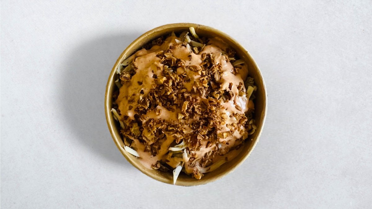 Krumpir, trgana svinjetina, sir, Heavenly umak, prženi luk