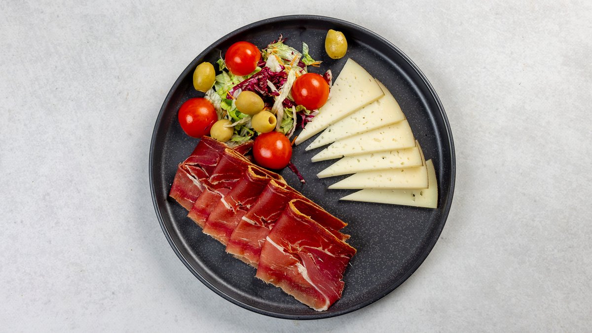 Pršut i sir, posluženi uz masline