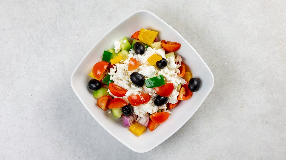 Feta sir, crveni luk, krastavac, paprika i masline