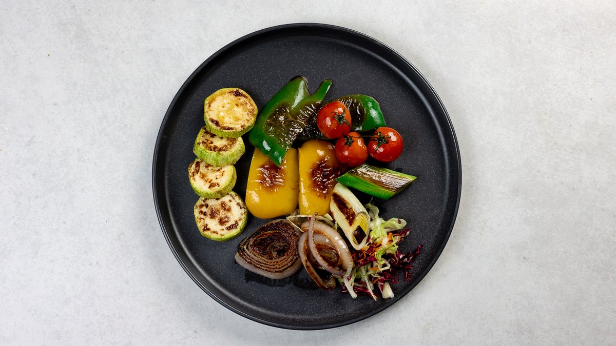 Tikvice, patlidžan, luk, crvena paprika i poriluk na žaru