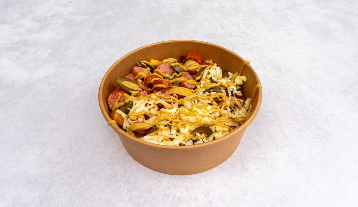 Domaći krumpir, jalapeno papričice, gouda, meso po izboru, karamelizirani luk, gljive, kajmak, umak senf-med