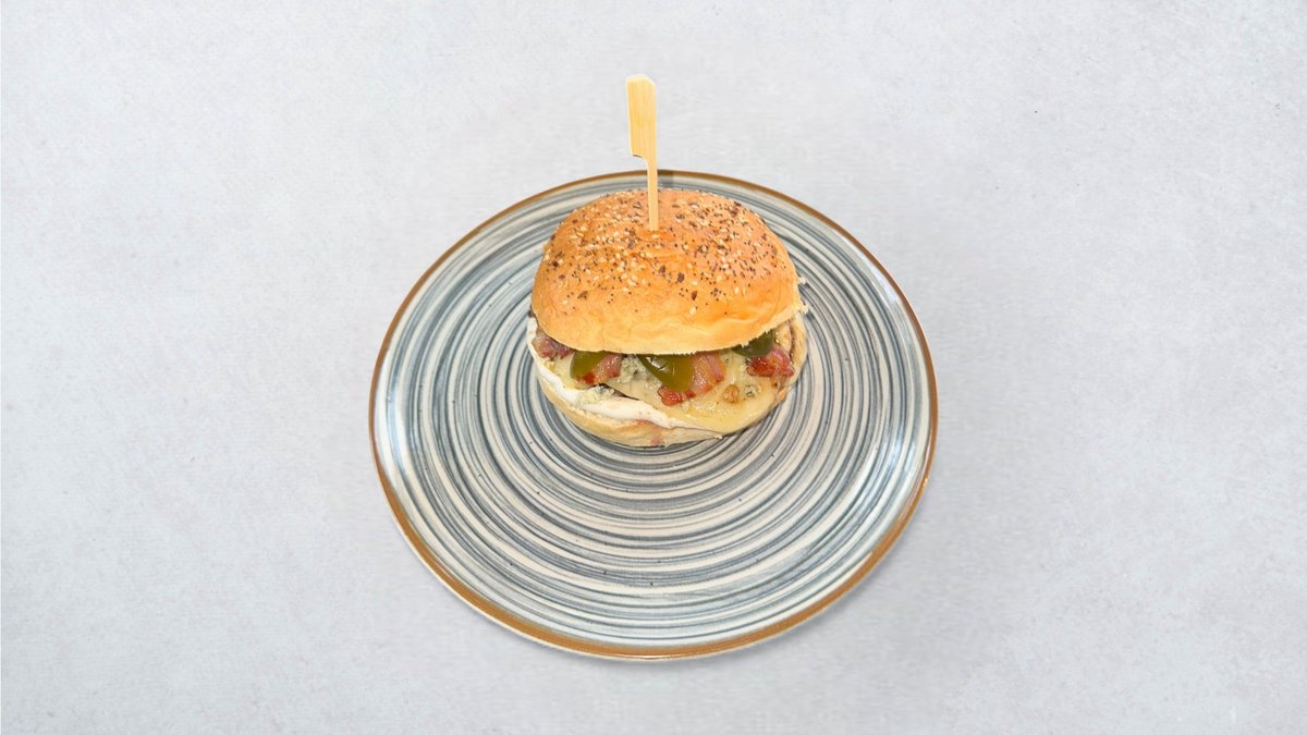 Domaće pecivo, meso po izboru, jalapeno papričice, hrskava slanina, gorgonzola-mozzarella, domaći kajmak, umak mayo-češnjak