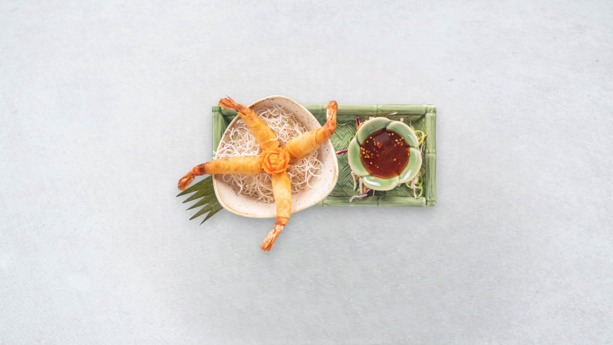 4 proljetne rolice s račićima; marinirani račići u umaku od kamenica i sezamovom ulju zamotani u roladu, domaći slatko ljuti umak