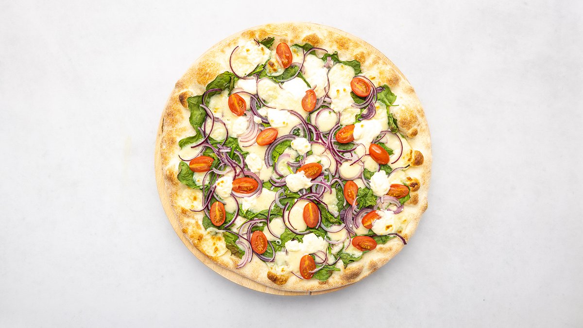 San Marzano pelati, češnjak, mozzarella Fior di Latte, pečena rog paprika'Nduja calabrese, burata, svježi bosiljak, pesto od bosiljka *slika je simbolična