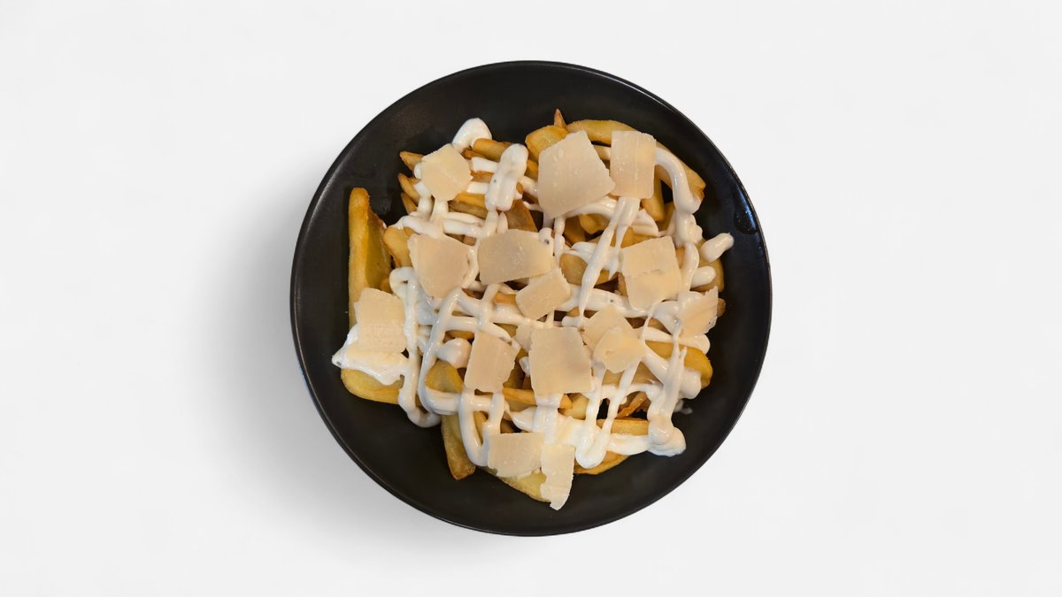 Krumpirići sa listićima granpadano sira, sezam i trufflemayo umak sa tartufima