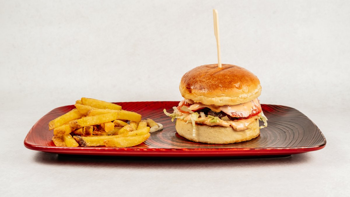 Pecivo, juneće meso, burger umak by Duje Pisac, salata, rajčica, Mccain pommes frites