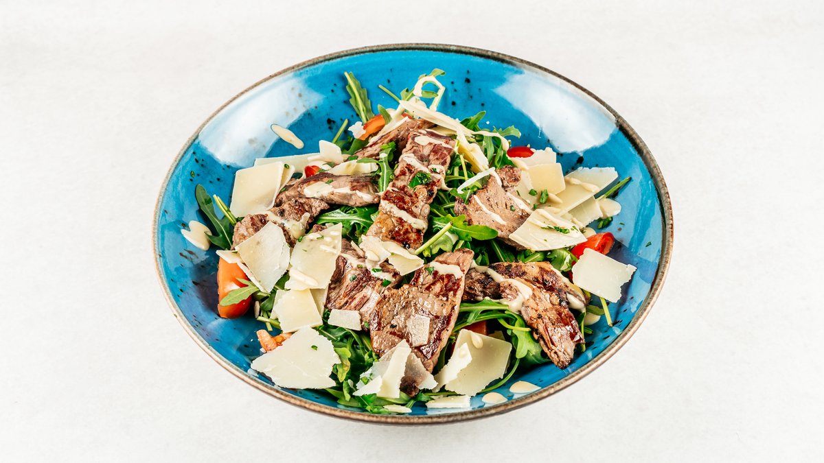 Salata od junećeg mesa s rikulom, Grana Padanom i cherry rajčicama u umaku