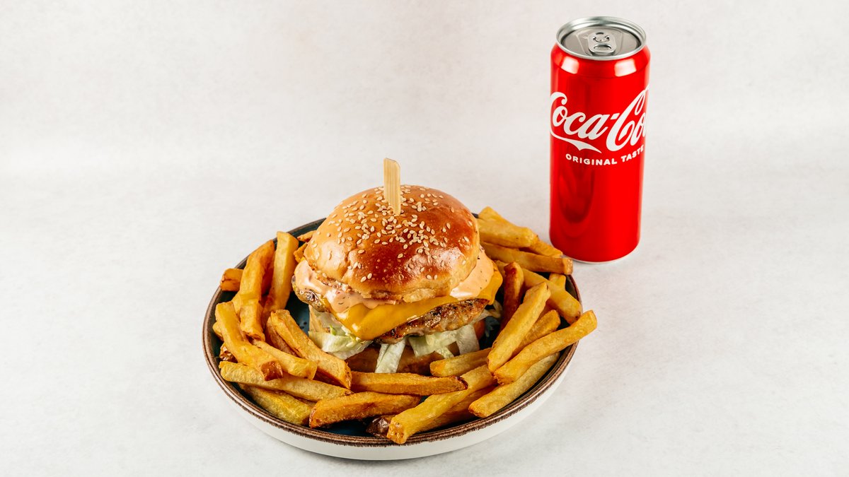Juneći burger + Pommes frites + piće ✨