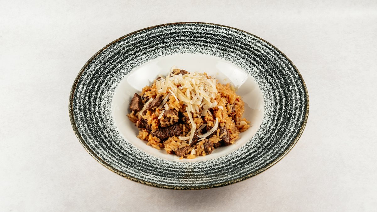 Sporo kuhana junetina, cheddar, gouda, gljive, luk, paprika