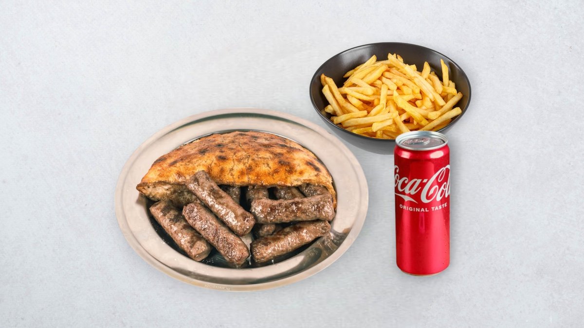 10x ćevap (250g), pola lepinja, pommes frites, Coca-Cola 0,33 l po izboru *slika je simbolična