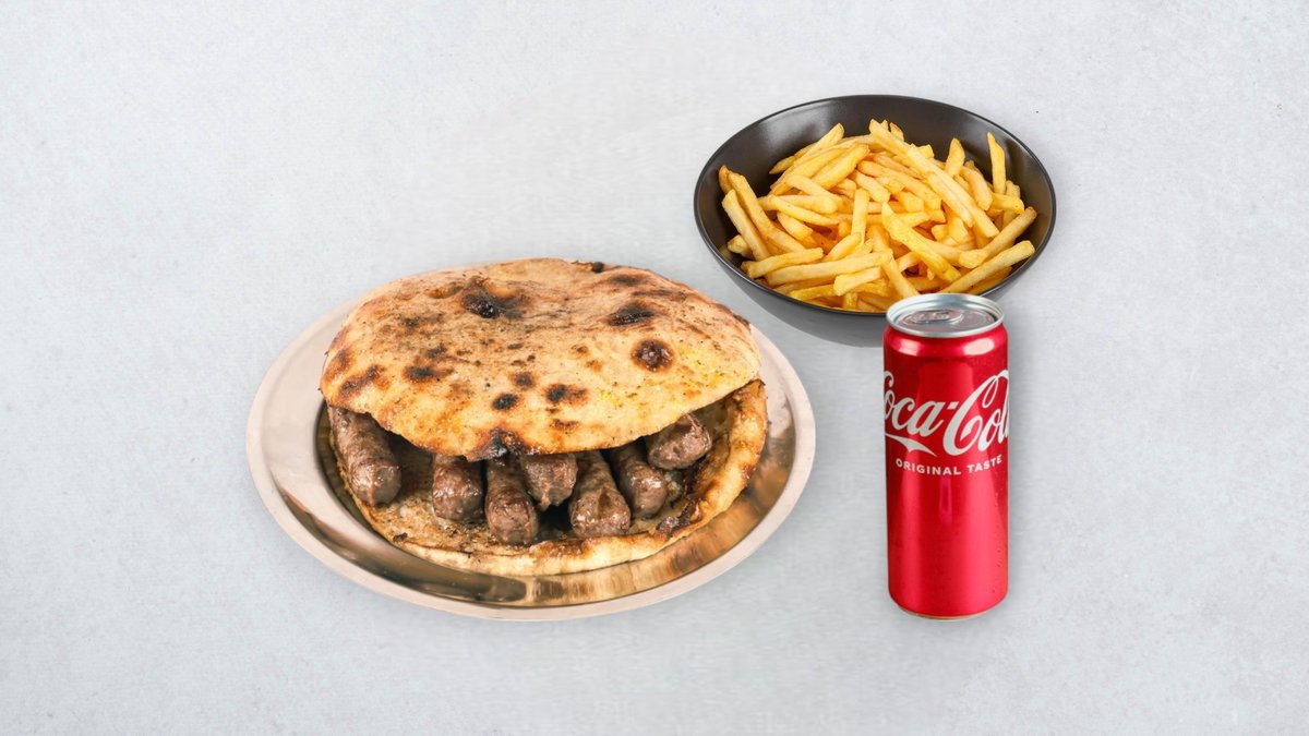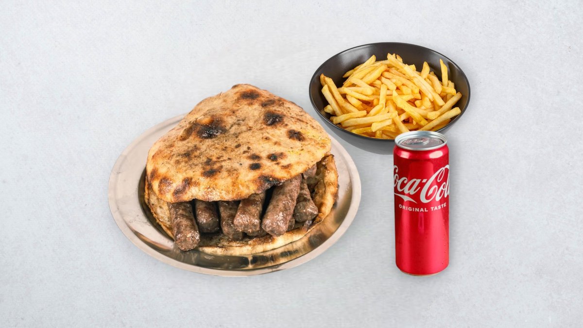 20x ćevap (500g), cijela lepinja, pommes frites, Coca-Cola 0,33 l po izboru *slika je simbolična