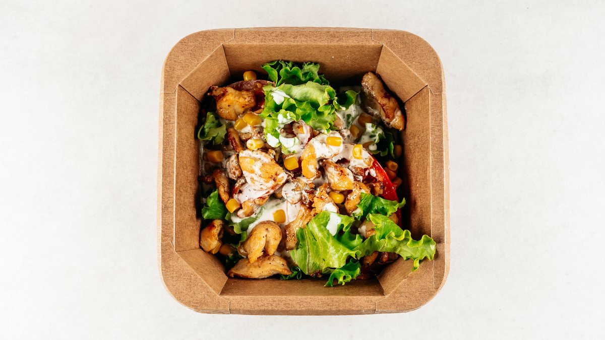 Sočna piletina i sir na postelji svježe salate s rajčicom i kukuruzom, povezano blagim kremastim umakom