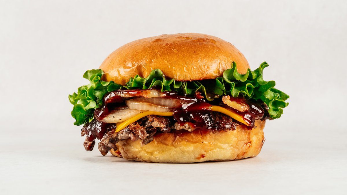 100% juneća pljeskavica s topljenim sirom, hrskavom pancetom, svježom salatom i BBQ umakom na tostiranim bublicama s karameliziranom kapulom
