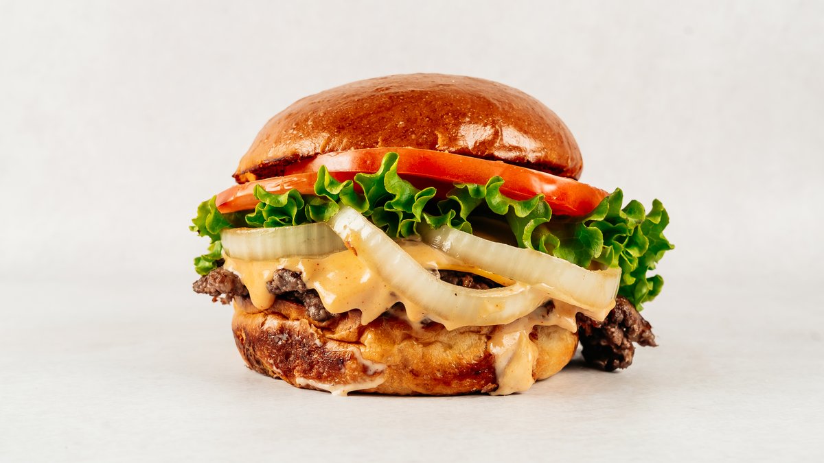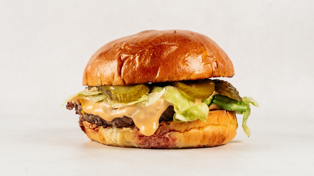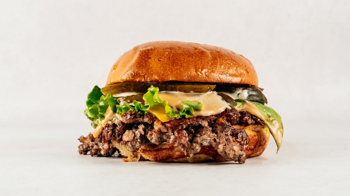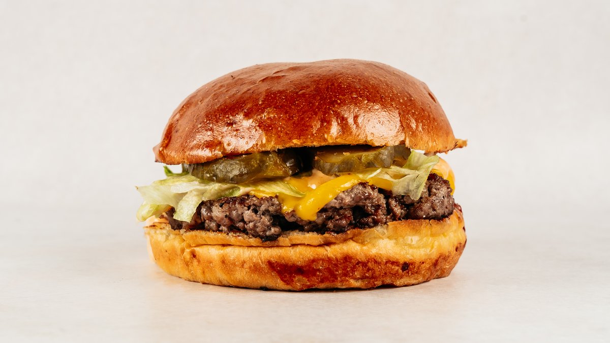Bezvremenska kombinacija dviju 100% junećih pljeskavica s topljenim sirom, svježom salatom, kiselih krastavaca i Champ umaka na tostiranim bublicama