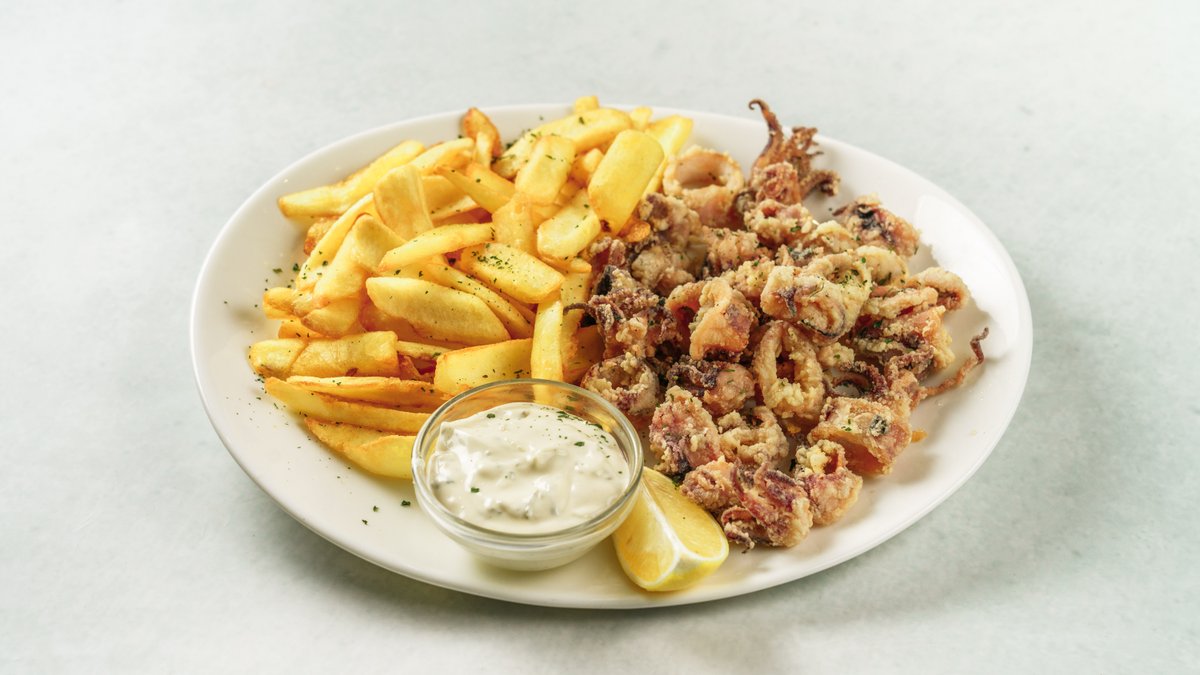 Pržene lignje s pommes fritesom