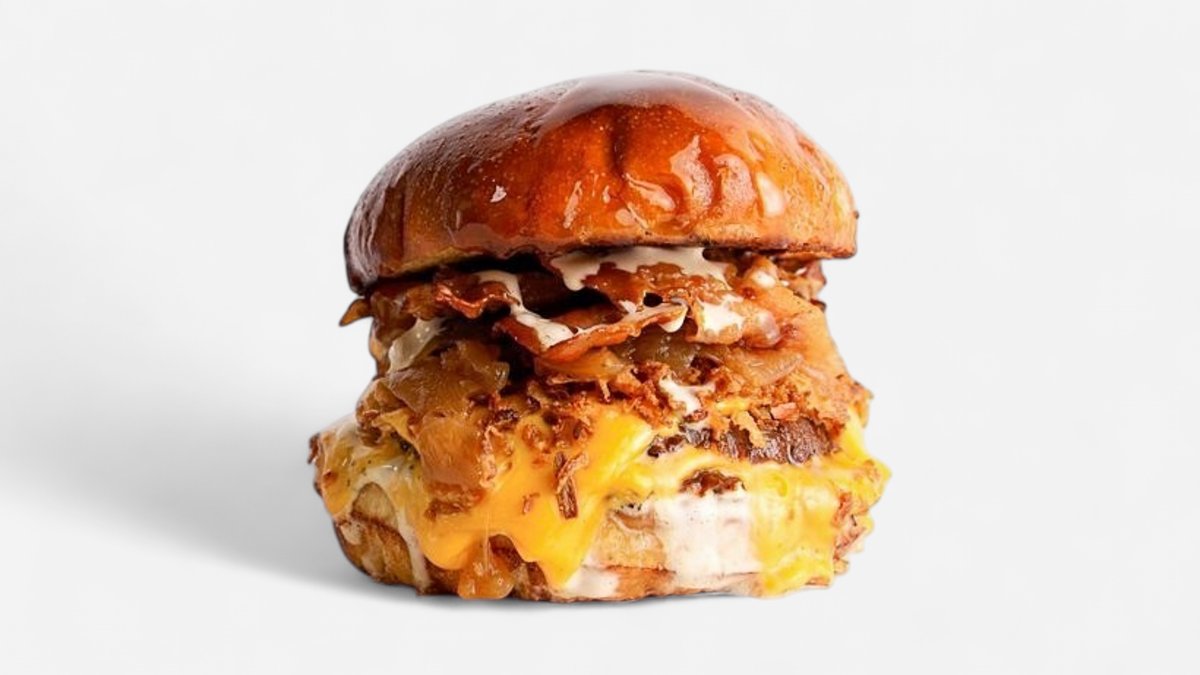 Dvije juneće pljeskavice (120g), panceta, karamelizirani luk, cheddar sir, hrskavi luk, 4burgers umak