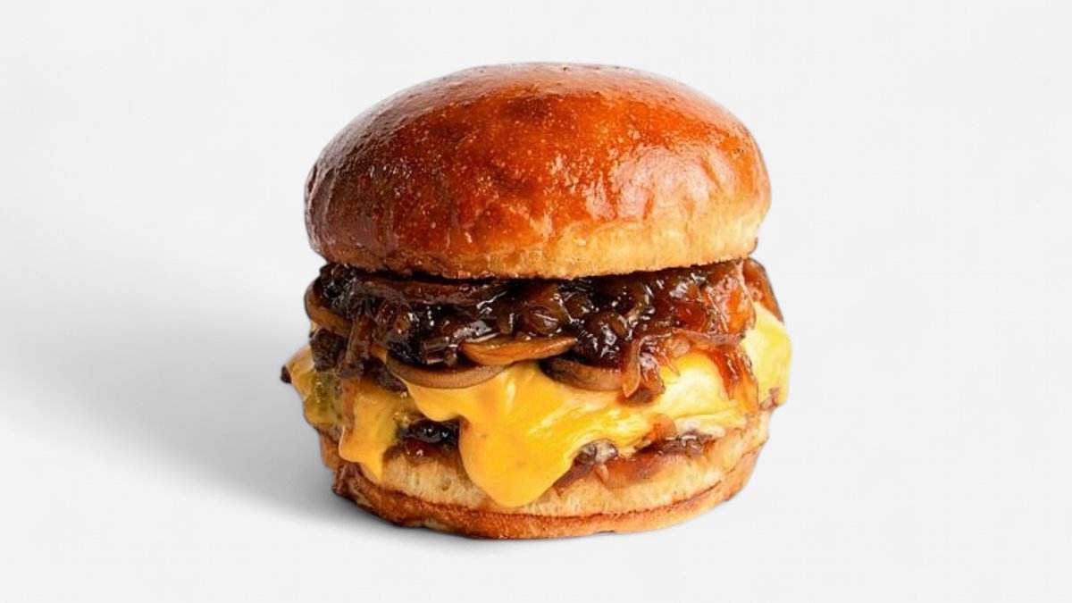 Dvije juneće pljeskavice (120g), pikantni džem, cheddar sir, gljive po izboru
