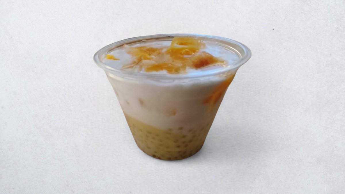 Mango prah, crni čaj, mlijeko, šećer, tapioca loptice, snježna kapa