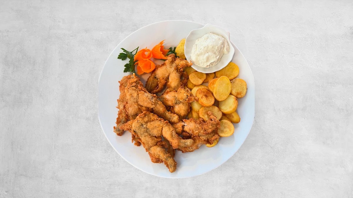 Pohane žabe, pommes, domaća bublica, miješana salata *slika je simbolična