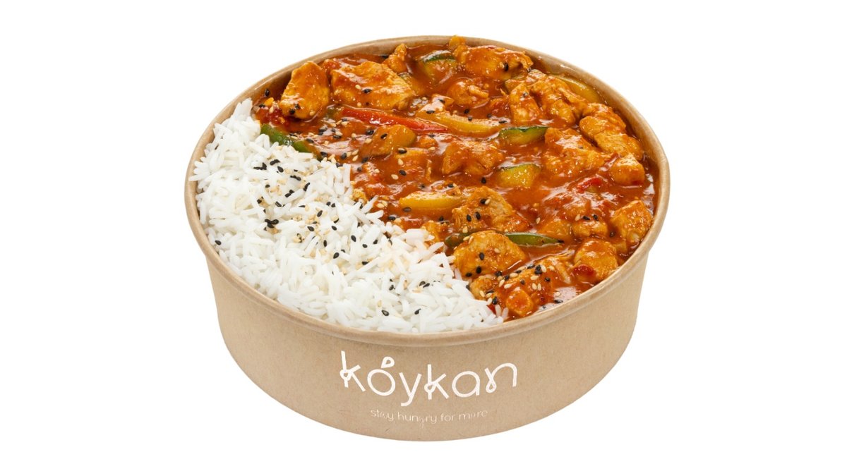 Basmati riža, Katsu piletina, Marinada za rižu, Miješana salata, Ukiseljena mrkva, Edamame, Kimchi, Cherry rajčice, Mješavina prženih orašastih plodova i Kimchi mayo umak