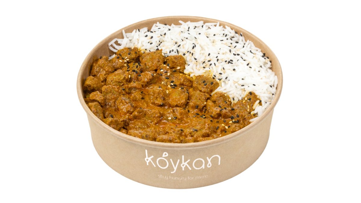 Goveđi Rogan Josh curry, basmati riža i prženi sezam.