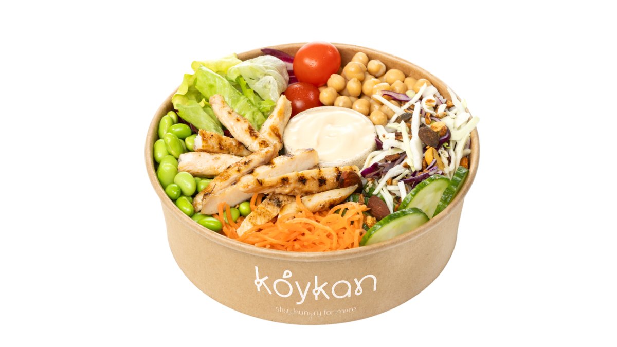 Miješana salata, Katsu piletina, Italian dressing, Coleslaw, Ukiseljena mrkva, Edamame, Kimchi, Cherry rajčica, Mješavina prženih orašastih plodova i Kimchi mayo umak