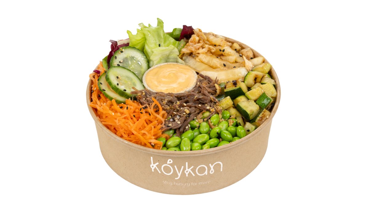 Miješana salata, Pulled govedina, Italian dresing, Kimchi, Tikvice sa žara, Ukiseljena mrkva, Edamame, Krastavac, Prženi luk, Prženi sezam i Kimchi mayo umak