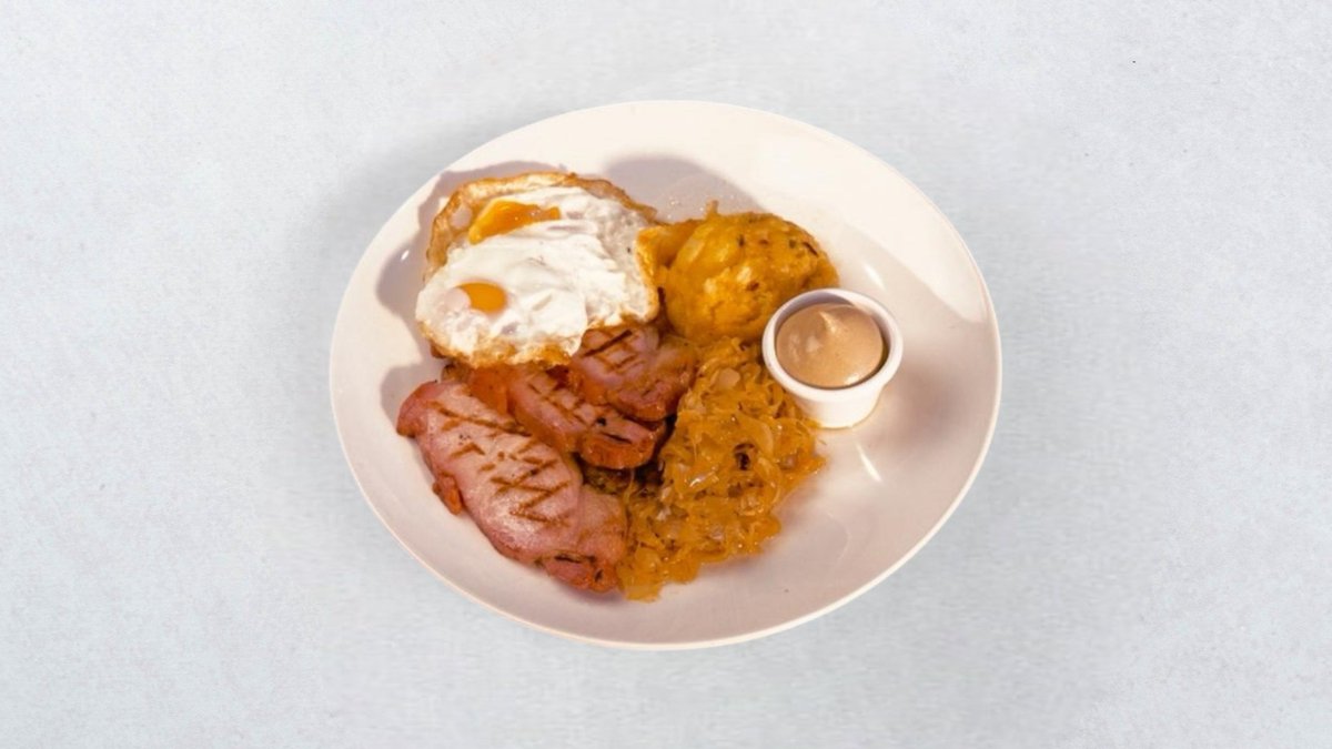 Domaća pečenica, jaje, kiselo zelje, restani krumpir