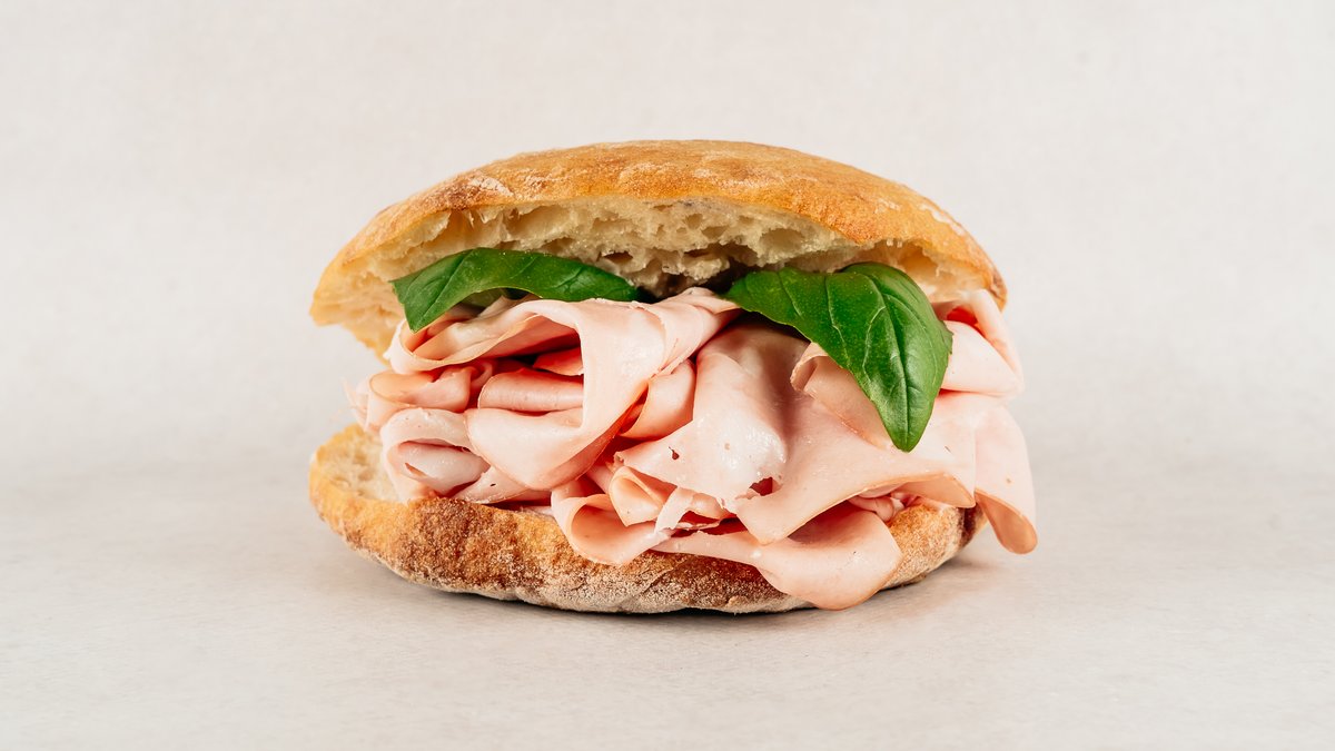 Mortadela, burrata punjena sjeckanim pistacijama, extra djevičanskim maslinovim uljem i svježim bosiljkom