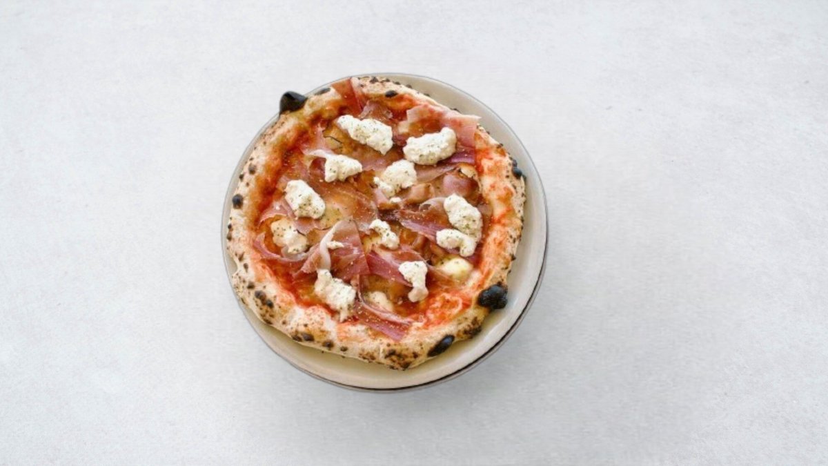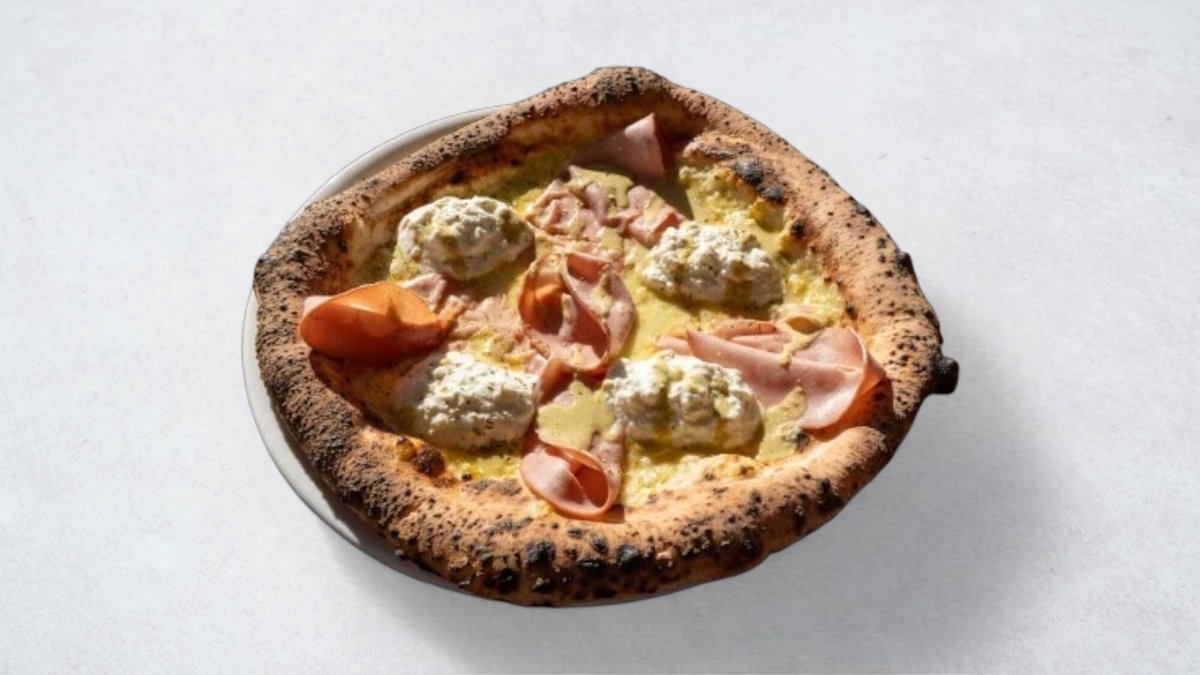 Sir, mortadela, stracciatella, pesto pistachio, rukola, rajčica, pizza tijesto