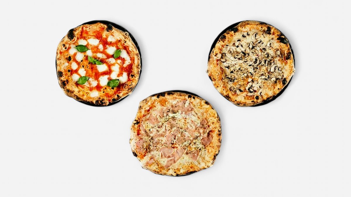 U combo ponudi dolaze: Pio cotto - Pelat San Marzano, edamer, gouda, kuhana šunka, origano Margherita talijanska - Pelat San Marzano, mozzarella fior di latte, maslinovo ulje, morska sol, bosiljak Nir funghi - Pelat San Marzano, edamer, gouda, svježi smeđi šampinjoni, origano