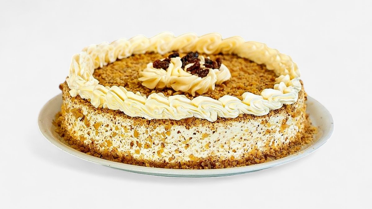 Jaja, orah jezgra, maslac, mliječno vrhnje 35,1% mm, top cream, top frola 10, irca genoise, riflex albicocca-gotovi pripravci za torte, bijeli šećer, rum za kolače, svježe voće-jabuka, cimet, biljno vrhnje *slika je simbolična