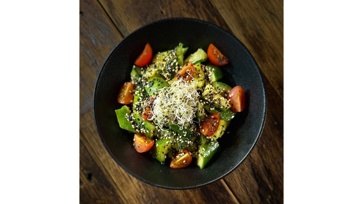 Krastavci, jabuka, cherry rajčice, sezam, češnjak *slika je simbolična