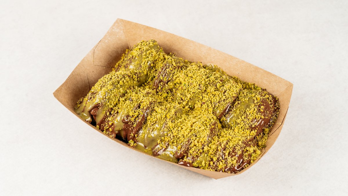10x mini palačinka, Nutella, preljev pistacio, posip pistacio