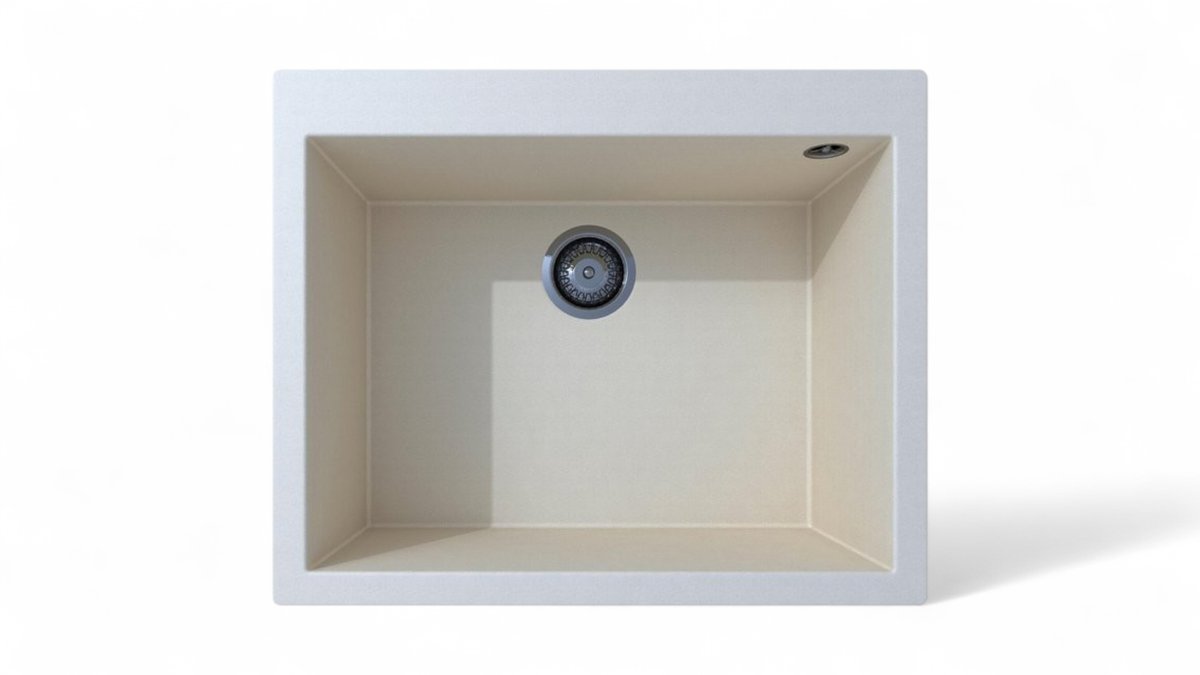 Sudoper granitni Concepto Ferro, 79x50 cm, jedno korito i ocjeđivač, Snow/bijela