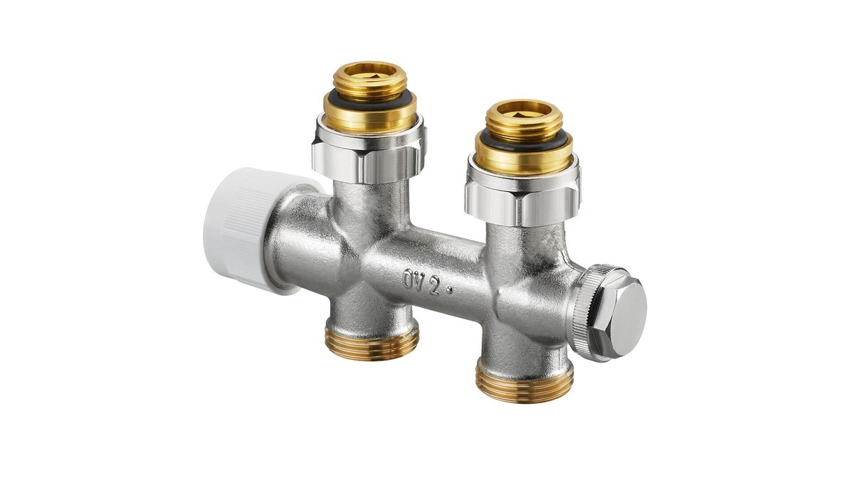 H-ventil dvocijevni Oventrop, ravni, termostatski, za vertikalni aluminijski/vertikalni pločasti/kupaonski radijator, s reduciranim nazuvicama, krom