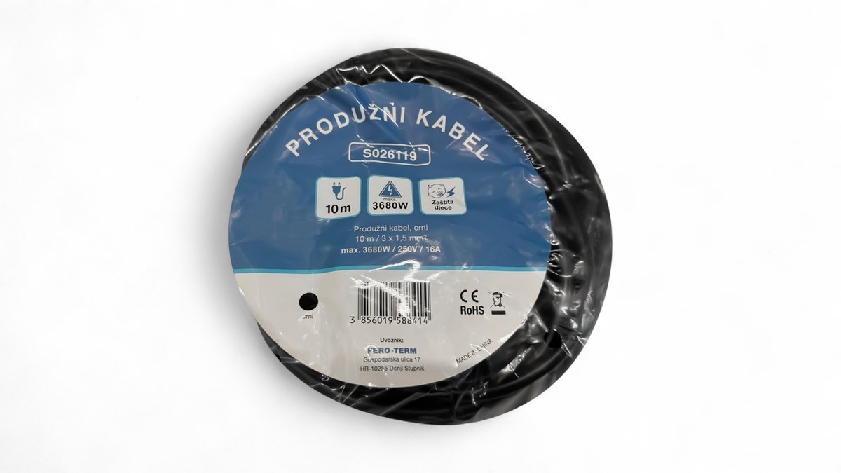 Kabel produžni TERMATools, 10 m, 3x1,5 mm, crni