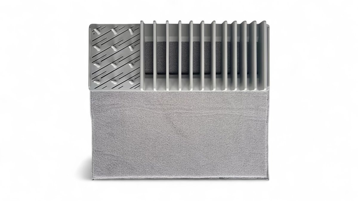 Stalak za sušenje posuđa s podlogom Voxort, 40x45 cm, svijetlo sivi