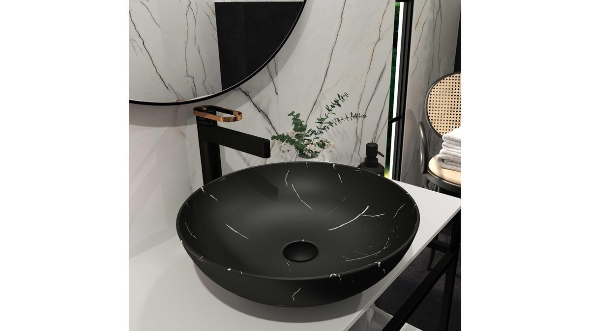 Umivaonik na ploču Concepto Bell Marble Black Round, 40x40x15,5 cm