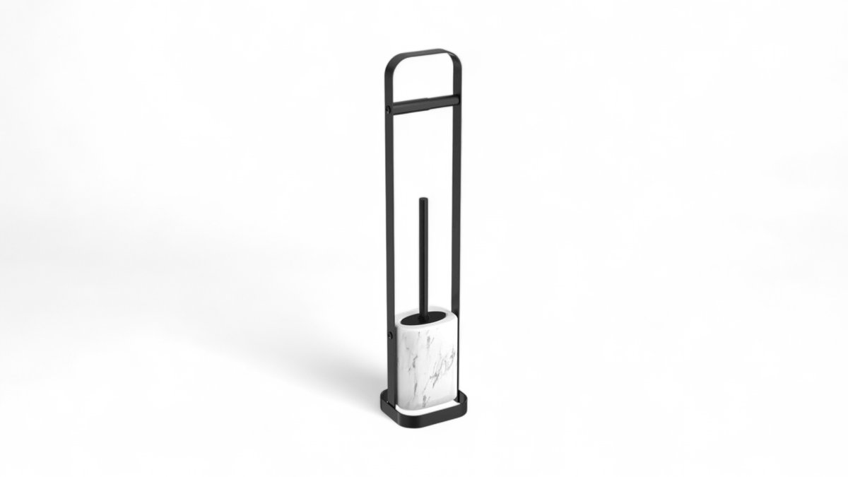 Toaletna četka+držač toaletnog papira Voxort Marble, stojeća, crna