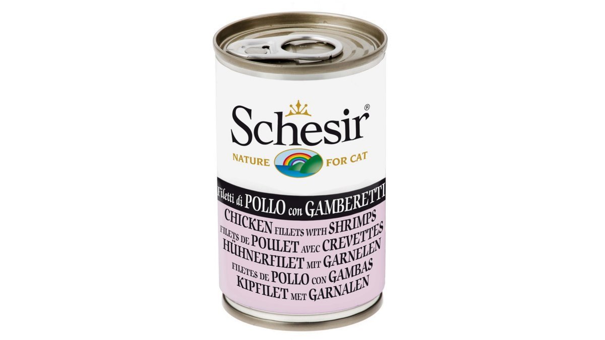 SCHESIR Konzerva za mačke, pileći file s kozicama, 140g