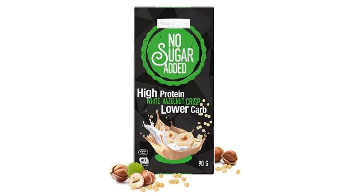 Proteinska Čokolada Bijela s lješnjakom - Bez dodanog šećera 90g Frankonia
